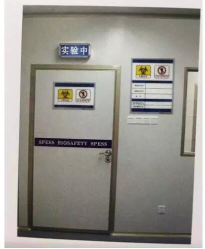 生物安全標志的使用。在二級以上的生物安全防護實驗室的入口明顯位置處必須貼有生物危險標志,并加以標明。如應明確標示出操作所接觸的病原體的名稱、危害等級/預防措施負責人姓名、緊急聯系方式等,同時,應標示出國際通用生物危險符號。