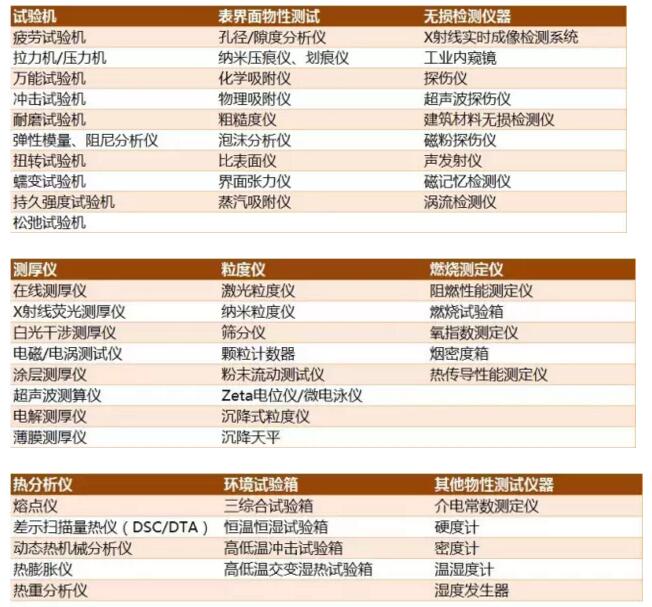 材料檢測會用到很多儀器設備,本文對不同類別的試驗用到的設備進行匯總,以供參考。