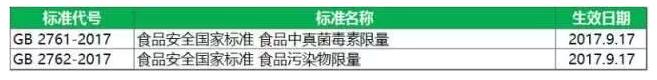 GB2761中規定了我國食品中真菌毒素的限量要求,GB2762中規定了除農藥殘留、獸藥殘留、生物毒素和放射性物質以外的化學污染物限量要求。