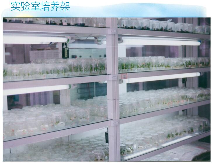 培養(yǎng)架一般設(shè)5層,最低一層離地高約lOcm,其他每層間隔30cm左右,培養(yǎng)架高1.7m左右。其長度根據(jù)日光燈長度而設(shè)計, 如采用40W日光燈,則長I.3m,30W的長lm,寬度一般為60cm。