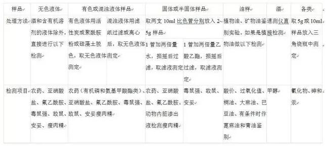 注意:不論是在日常預防性監測還是中毒現場檢測發現陽性樣品時,都要重復進行檢測,并將樣品送實驗室進一步檢測。 在中毒現場檢測樣品為陰性時,應擴大樣品檢測范圍,還要考慮到其他毒物的存在,采好樣品到實驗室進一步檢測。