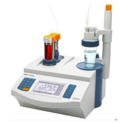自動電位滴定儀是由指示電極、參比電極與試液組成電池,在電位滴定過程中隨著滴定劑的加入,溶液中發(fā)生化學反應(yīng),被測離子的濃度不斷發(fā)生變化,因而引起指示電極和參比電極之間電位發(fā)生變化。在等當點附近,兩電極之間的電位發(fā)生突躍,利用此突變電位結(jié)合儀器內(nèi)部的計算程序計算可得到滴定終點。